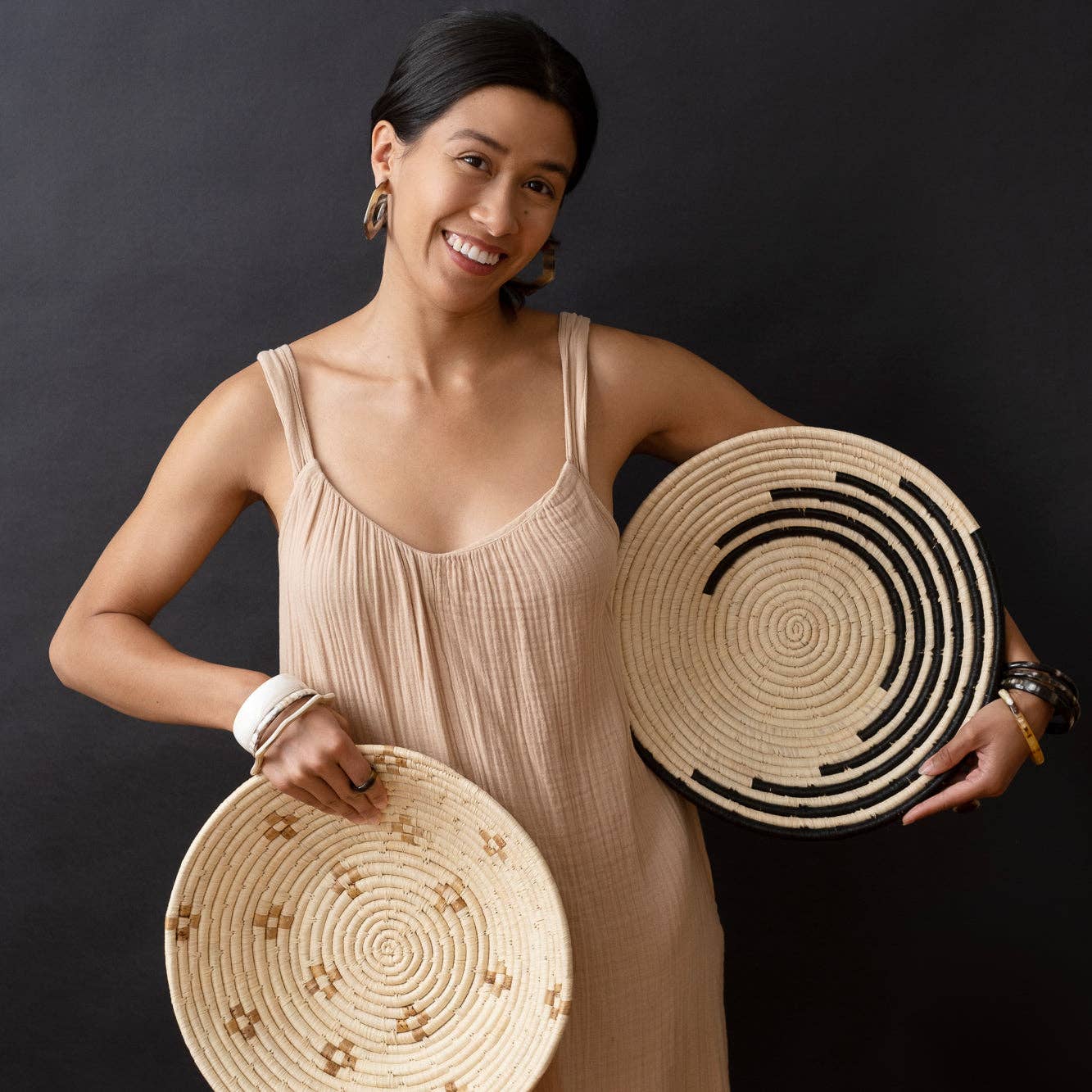 Make a wall statement with a stunning collection of baskets on display or elevate your tablescape with a unique centerpiece. A simple yet bold basket from our Black & Natural collection.