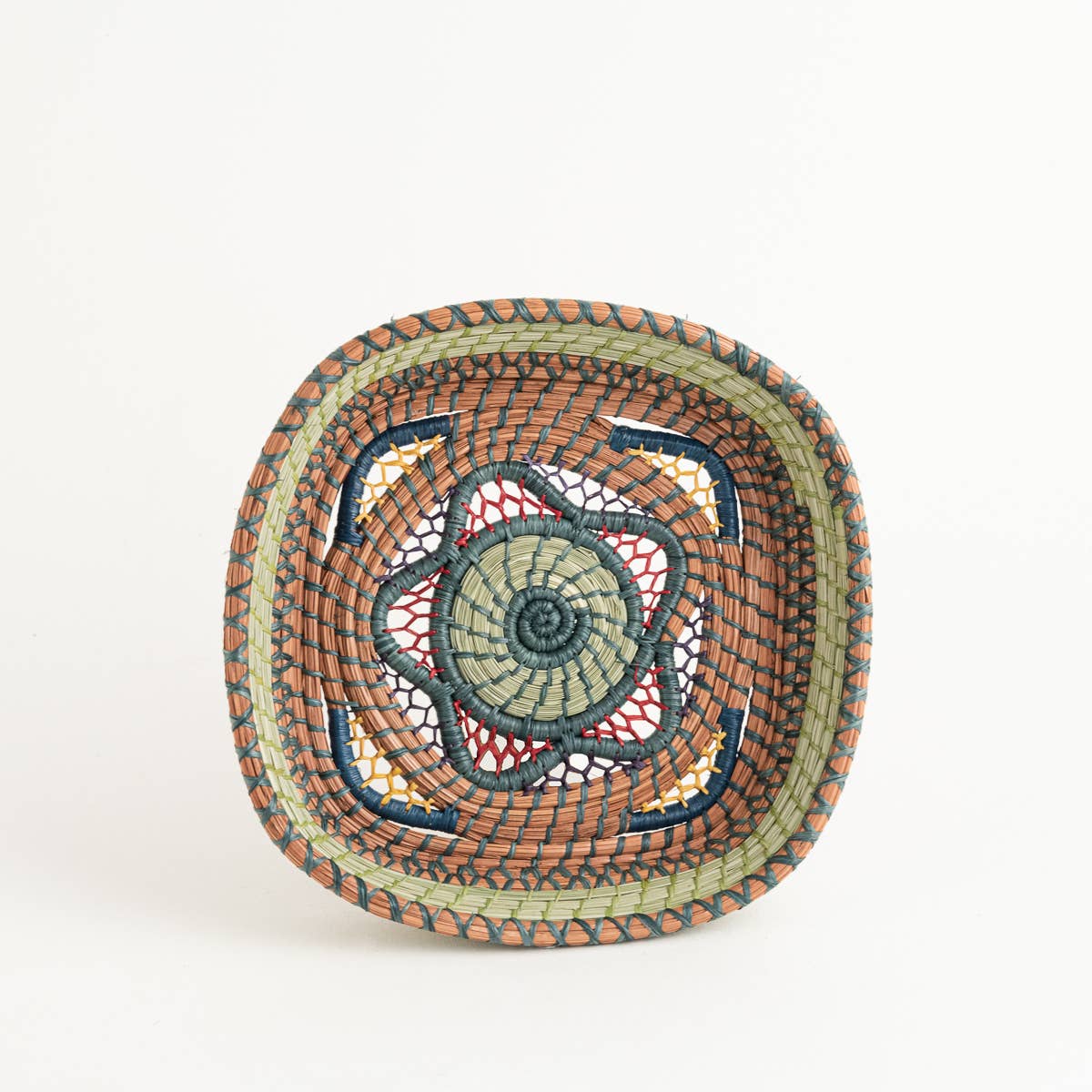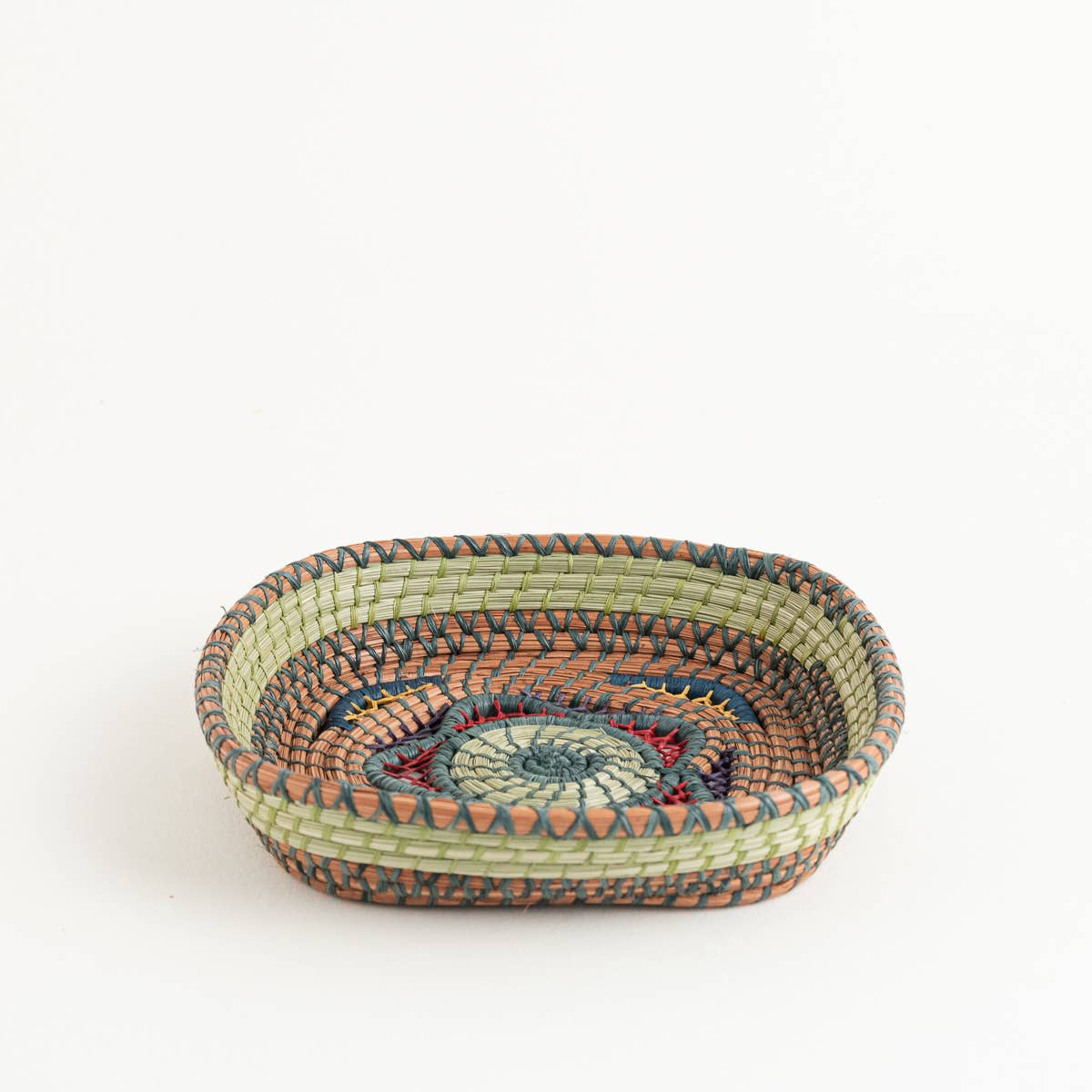 The Estrella Basket is a smaller version of the popular Dahlia Basket. It is intricately woven of pajon, a native wild grass, and pine needles with colorful raffia accents. Handmade and designed by the women of Mayan Hands, this sturdy basket may be decorative, but it's entirely functional too.