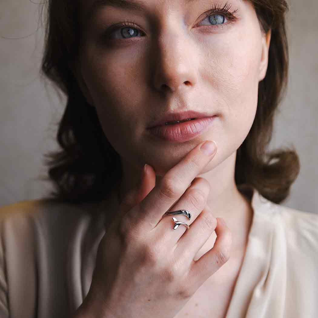 Sterling Silver Adjustable Wave and Whale Tail Ring